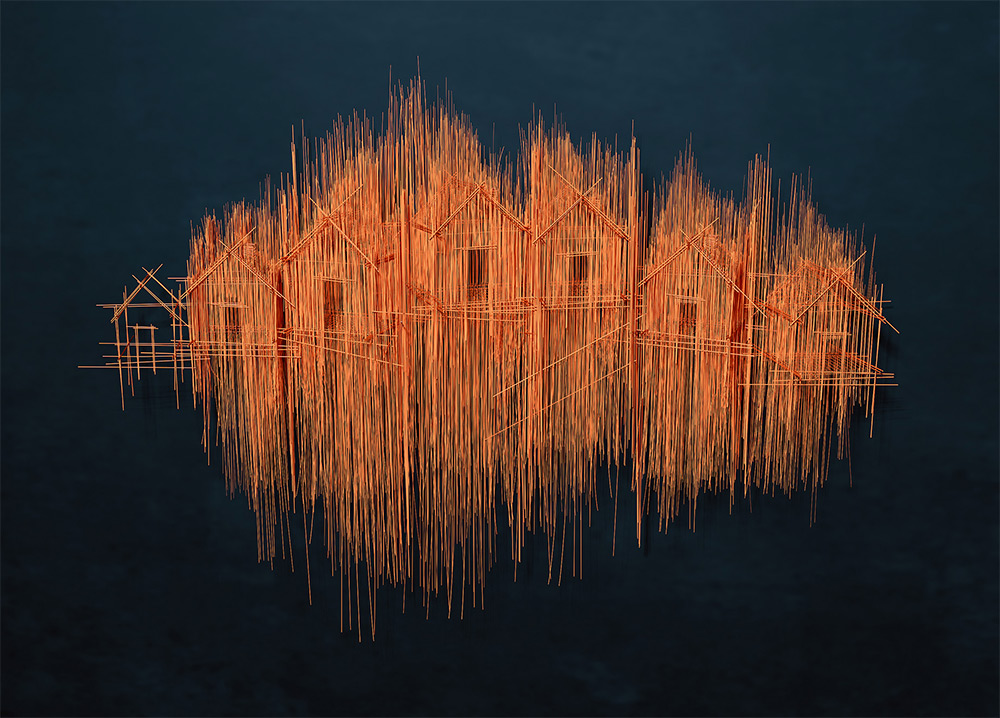 Spanish artist David Moreno works with hundreds of steel bars and piano wires to create bulky sculptures that look like 2D sketches. Each work of art, usually focused around a row of buildings or home-like ...